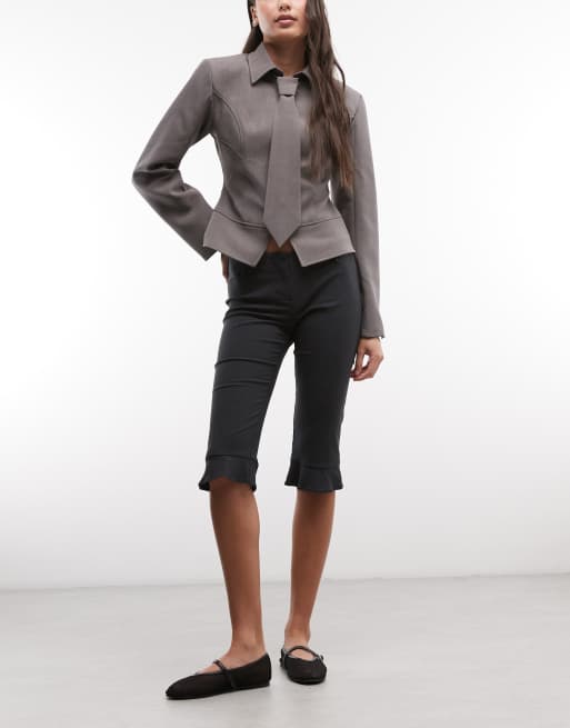 Monki ruffle capri pants in black