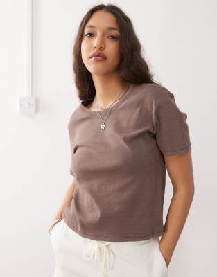 Monki shrunken t-shirt in chocolate brown