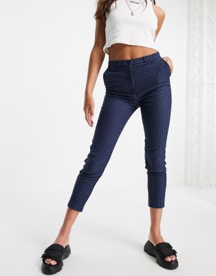 Monki slim leg houndstooth pants in blue