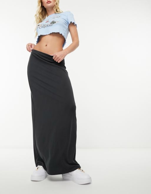 Monki super soft maxi skirt in charcoal grey
