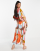Monki tie-waist midi dress in shape print