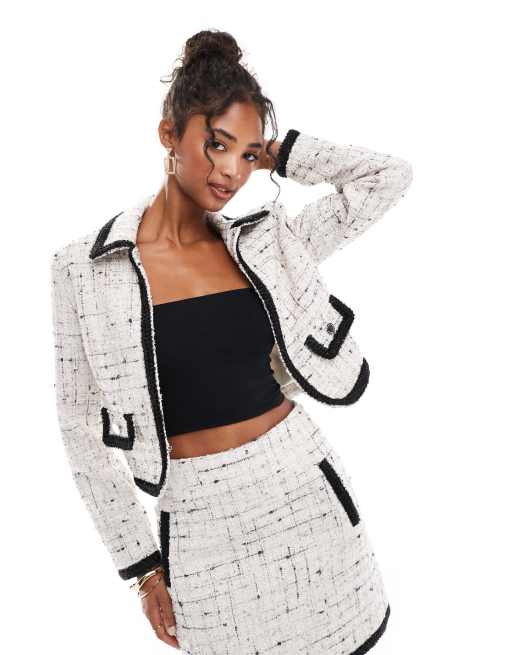Morgan tweed pocket detail jacket with contrast trim in cream (part of a set)