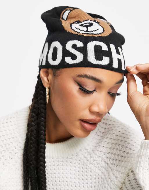 Moschino teddy logo beanie hat in black