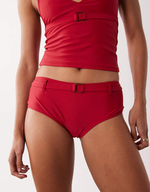 Motel Avi belt detail bikini shorts in red (part of a set)
