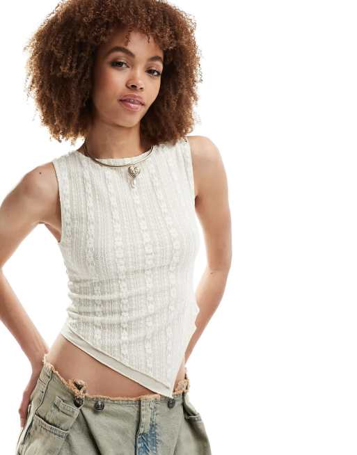 Motel Etta double lace asymmetric singlet in ivory
