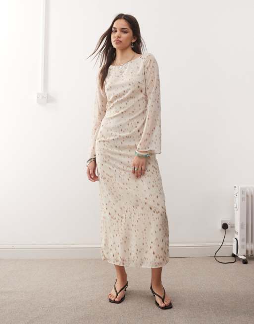 Motel Jadie bambi print scoop back maxi dress in ivory