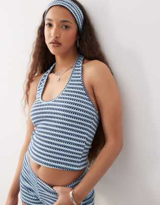 Motel Jules striped halter top in tonal blue (part of a set)
