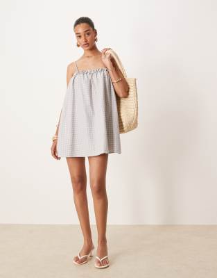 Motel Kamalani gingham mini smock dress in blue grey