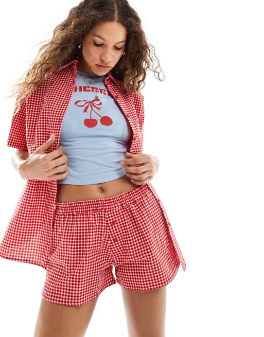 Motel Laboxe beach shorts in red gingham (part of a set)