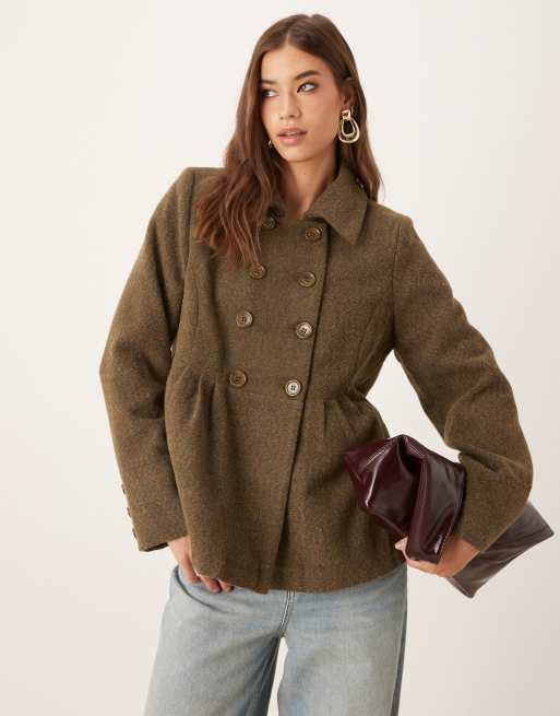 Motel Lacarti double breasted herringbone coat in olive