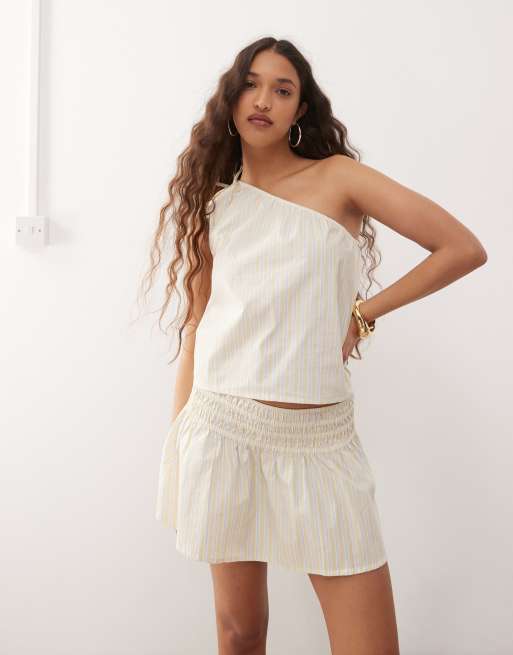 Motel miringa candy striped one sleeve top in lemon yellow (part of a set)