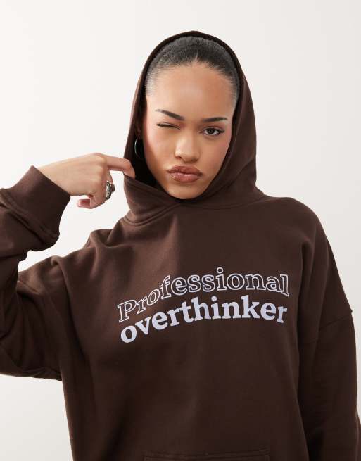 Motel oversized slogan hoodie in bitter chocolate