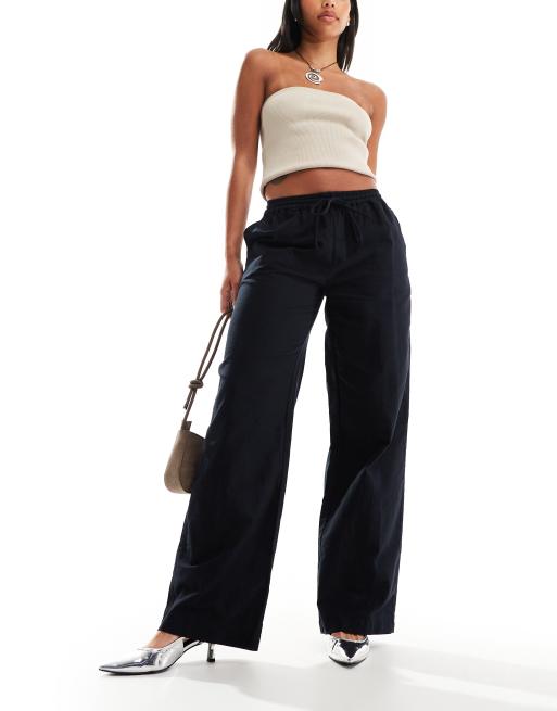 Motel Wasic wide leg low rise linen look pants in black