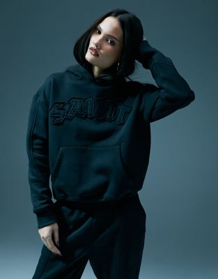 Murci oversized saint motif hoodie in washed black (part of a set)