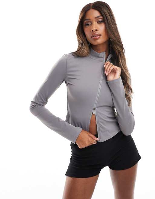 Murci super soft asymmetric zip jacket in grey (part of a set)