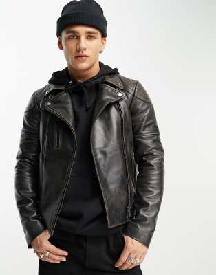 Muubaa leather distressed finish biker jacket in black
