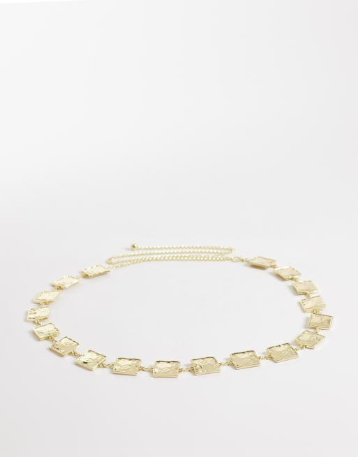 My Accessories Curve hammered square chain belt in gold