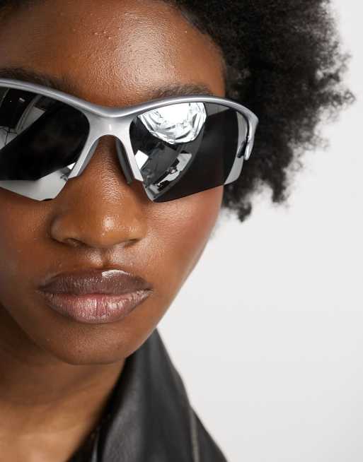 My Accessories London visor racer sunglasses in silver with mirrored lens