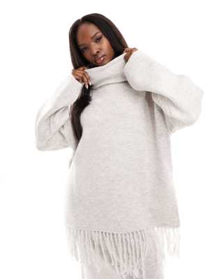 NA-KD high neck fringe edge jumper in greige (part of a set)
