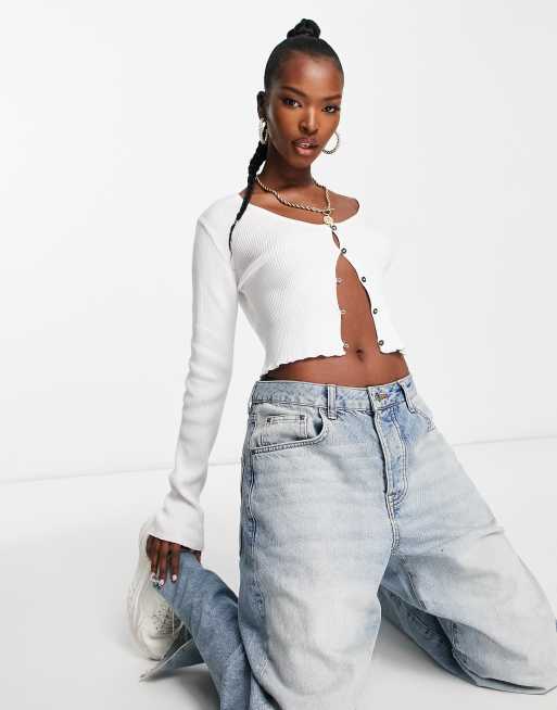 NA-KD lightweight button cardigan in white