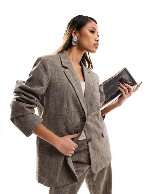 NA-KD oversized herringbone blazer in dark beige (part of a set)