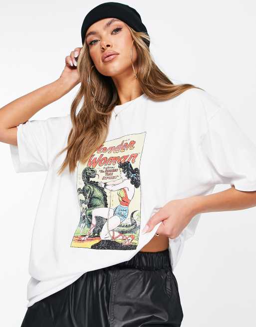 NA-KD oversized t-shirt in white with Wonder Woman print