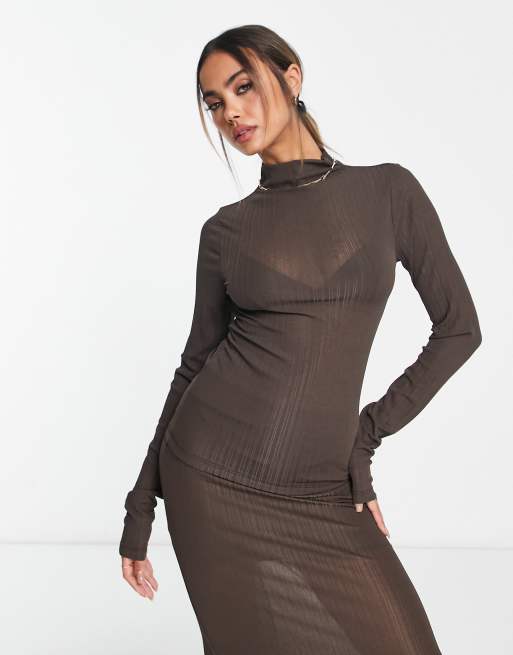 NA-KD X Georgina Lennon sheer knitted high neck top in brown (Part of a set)