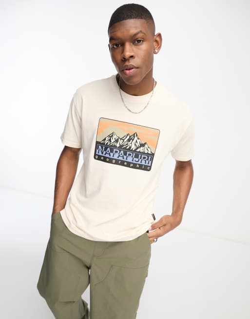 Napapijri Hello chest print t-shirt in off white Exclusive at ASOS