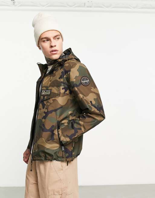 Napapijri Rainforest zip up water repellent hooded jacket in green camo print