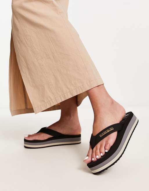 Napapijri Tick platform flip flops in black