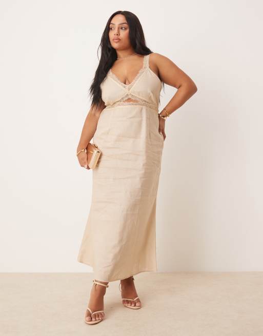 Never Fully Dressed Plus Mimi linen look cut-out midaxi dress in oatmeal