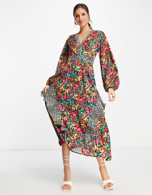 Never Fully Dressed backless frill midaxi dress in contrast print