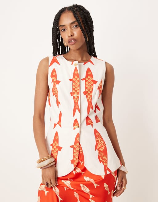 Never Fully Dressed marina print waistcoat in white (part of a set)