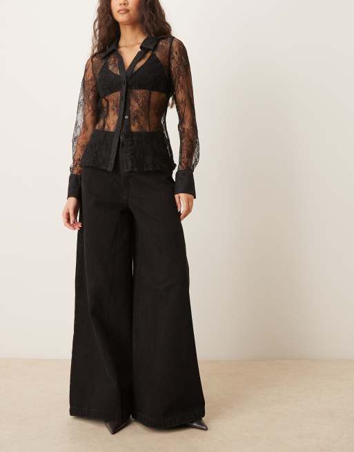 Never Fully Dressed palazzo wide leg jeans in black