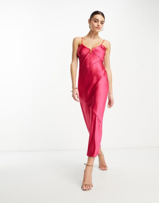 Never Fully Dressed satin slip dress in pink and red