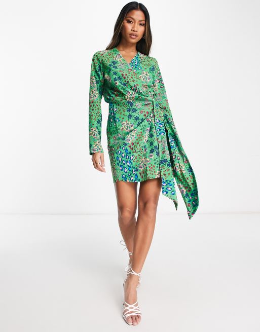 Never Fully Dressed wrap tie mini dress in emerald leopard