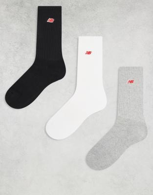 New Balance 3 pack ribbed crew socks in multi with red logo
