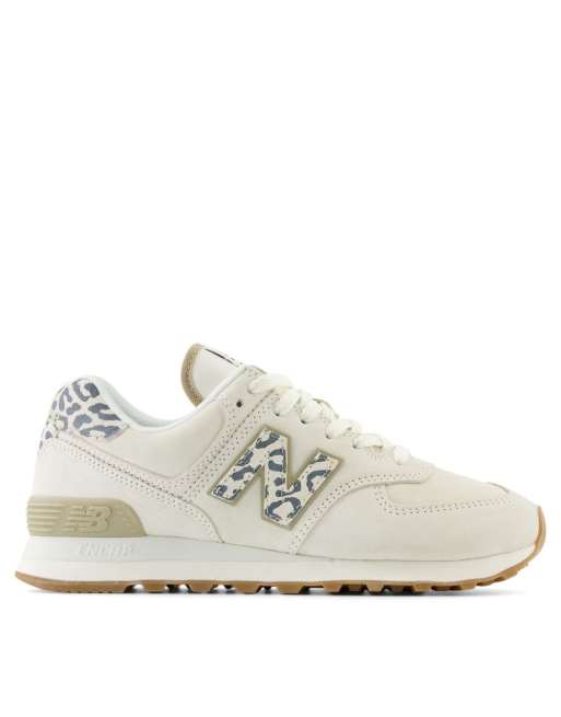 New Balance 574 trainers in white with leopard print