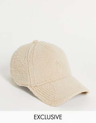 New Era Exclusive 9Forty cap in beige teddy with tonal NY
