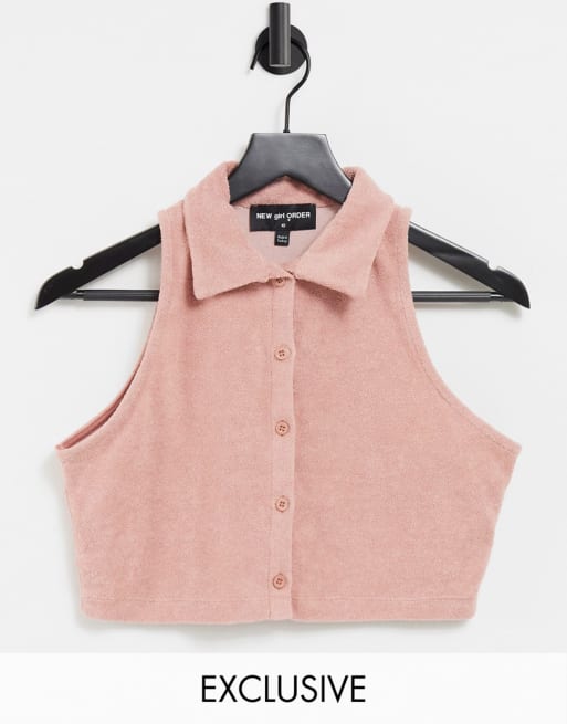 New Girl Order Exclusive terry towelling co-ord set in blush pink