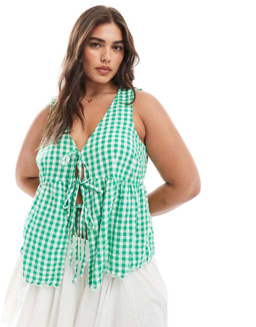 New Look Curve gingham tie shell top in green