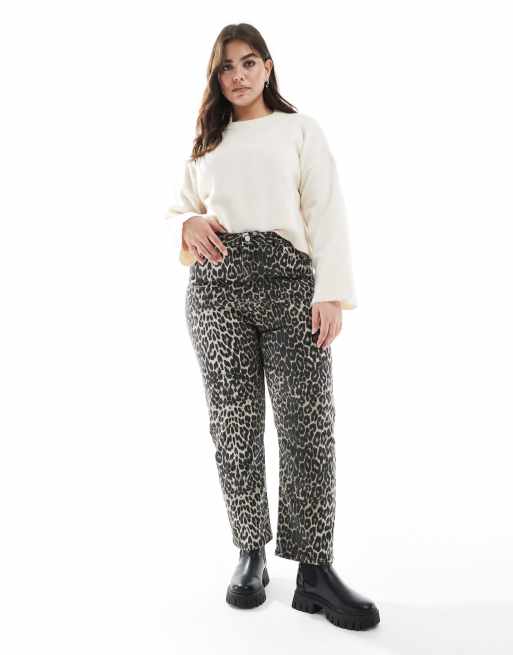 New Look Curve Hannah straight leg jeans in leopard print