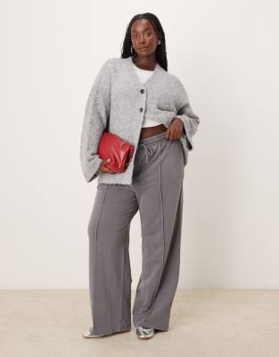 New Look Curve pintuck wide leg trackies in dark grey
