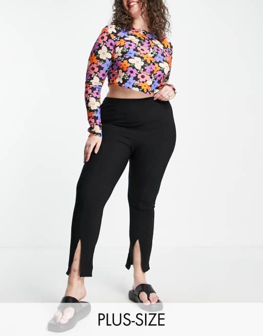 New Look Curve split hem leggings in black