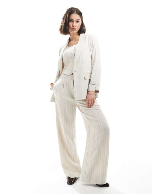 New Look 3 piece striped tailoring set in cream