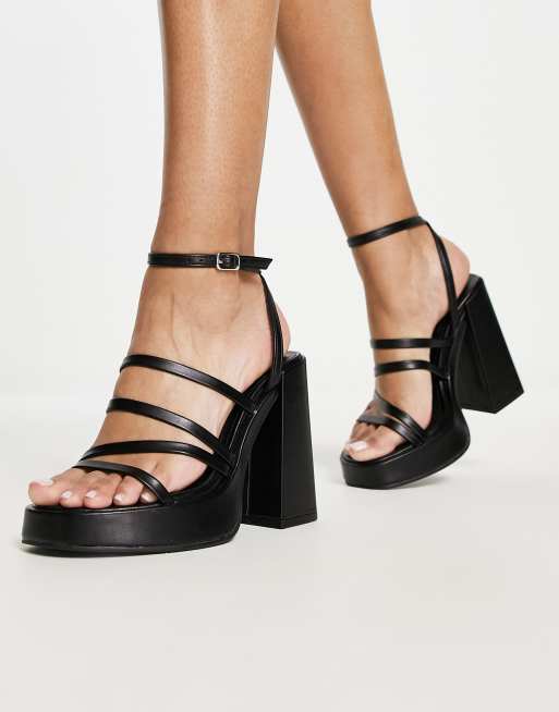 New Look 90s platform strappy heeled sandals in black