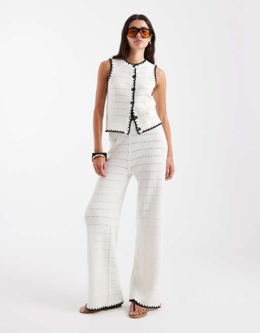 New Look blanket stitch pants in cream (part of a set)