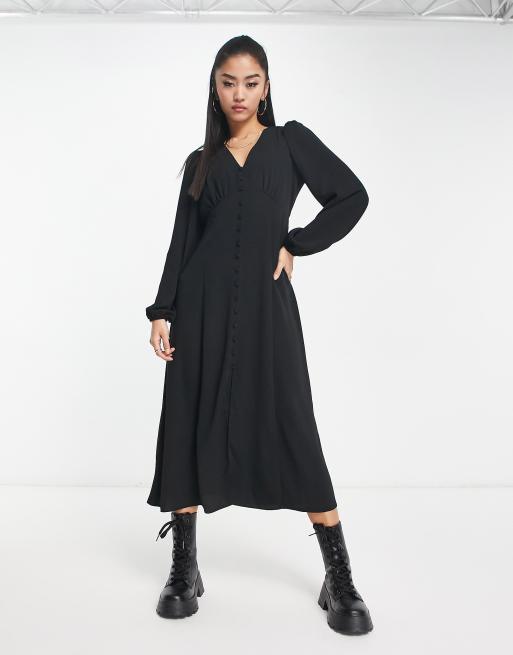 New Look button front long sleeve tea dress in black