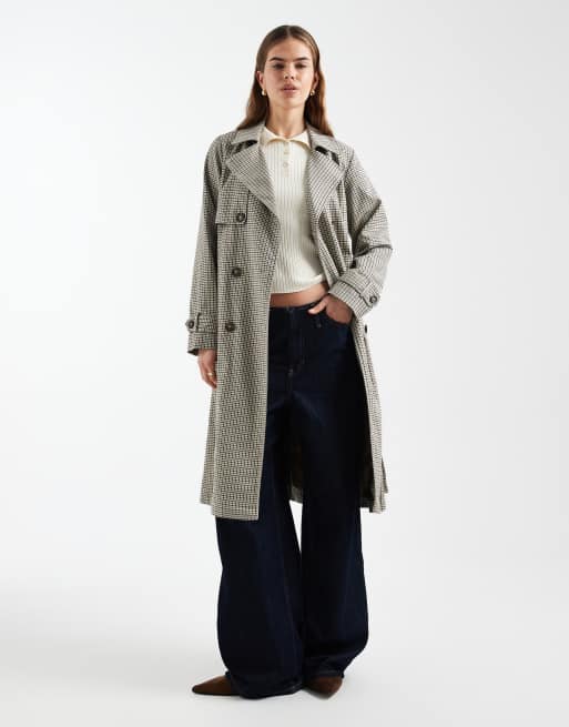 New Look check trench coat in brown pattern