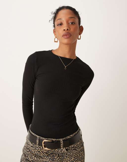 New Look crew neck long sleeve bodysuit in black